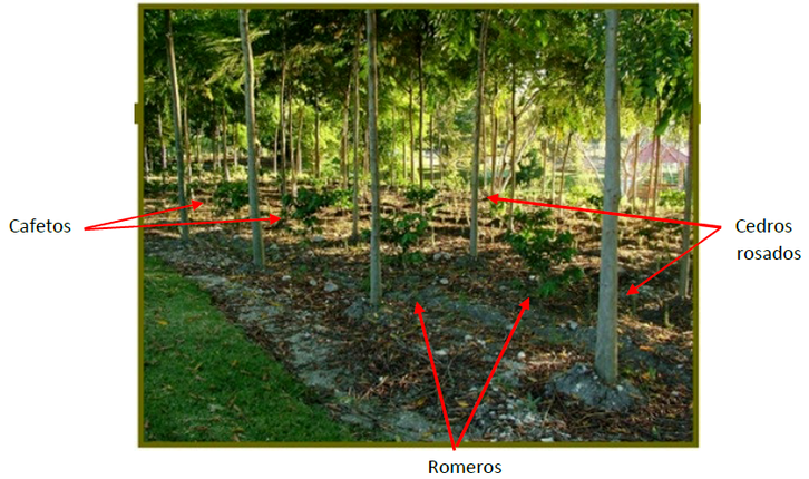 Así mismo se experimentó en Yautepec, Morelos; con una producción Agroforestal en una fracción de tierra en donde el Ph inicial era de 10, estabilizando el Ph con zeolita e introduciendo especies no nativas en estrato bajo romero, en estrato medio café y en estrato alto Cedro Rosado; logrando la producción como se ve en la imagen de abajo, con buen resutado, pese a que ninguna especie por el tipo de clima y condiciones de la zona podría producirse en el lugar.