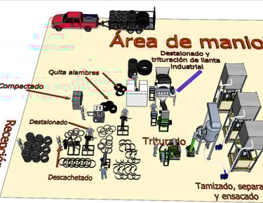 Realizamos proyectos de aprovechamiento de Residuos de Manejo Especial, en específico neumáticos de uso, así mismo fabricamos cualquier maquinaría para el reciclaje y aprovechamiento de los neumáticos de uso.