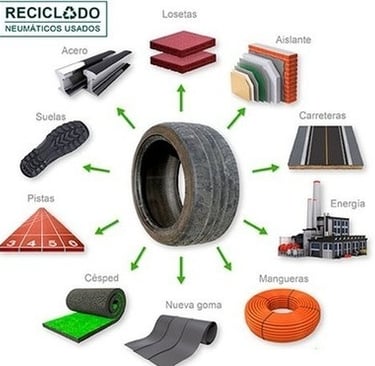 1. Uso del caucho de llanta para formar diversos productos mediante métodos químicos y/o térmicos.