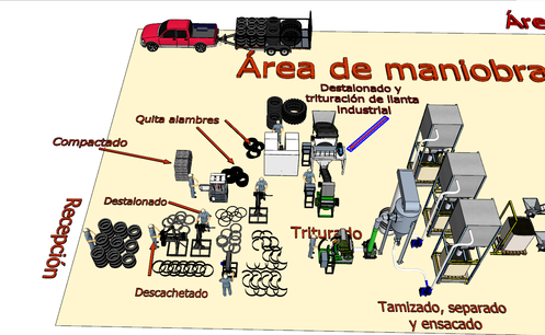 1. Instalar una planta de trituración y segergación de los componentes contenidos en los neumáticos.