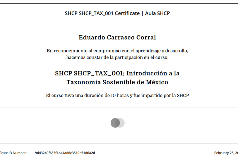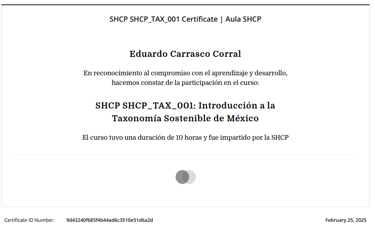 1. Contamos con el curso de Taxonomía Sostenible de la SHCP, estamos certiicados en ello y nos hemos seguido especializando.