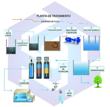 El tren de tratamiento del sistema de Cavitación, es el siguiente: