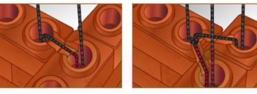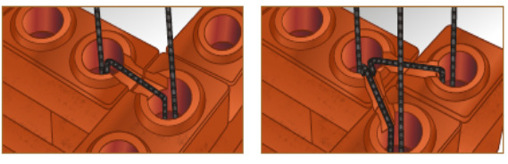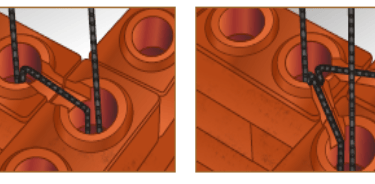 Hay ladrillos rebajados en las aristas para facilitar aún más la adhesión del material en el acabado.