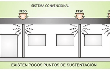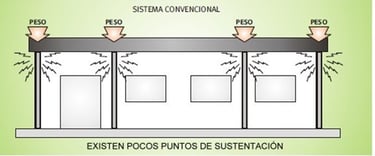 En la incrustación de columnas de soporte, tendremos una economía y ahorro por el uso de cimbra y prescindiremos del uso excesivo de madera.Y, sin embargo, podemos contar con la ventaja en la distribución de las columnas durante la construcción, evitando la concentración de peso en unos pocos puntos de la estructura, véase el ejemplo: