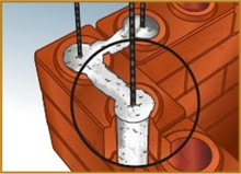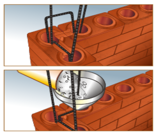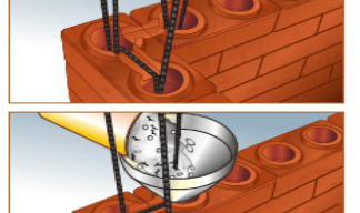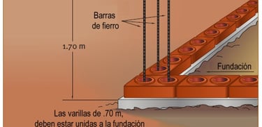 Es importante que las primeras filas se encuentren bien niveladas, para una buena precisión de las paredes, si es necesario puede ser asentadas de manera convencional.Como la fundación, las barras de hierro de las columnas deberán estar fusionados en la losa antes de que las paredes sean erigidas.