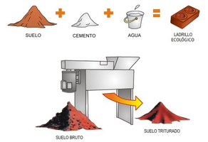 Para la fabricación de ladrillo modular de forma ecológica, se utiliza tres elementos básicos, todo dentro de un sistema técnico estandarizado.