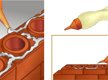 Basta el poco uso de un pegamento o cemento para que en el sistema de construcción modular se asiente un ladrillo. Para aplicar pegamento se podrá usar un aplicador, tubo o botella pequeña para la dosificación.El uso del cordón de cemento, es la técnica más utilizada debido a su bajo costo.