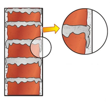 Los pequeños espacios entre los ladrillos son necesarios para mejor agarre del yeso o mampostería, y no comprometen el aspecto de las paredes a la vista de ladrillo.