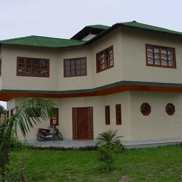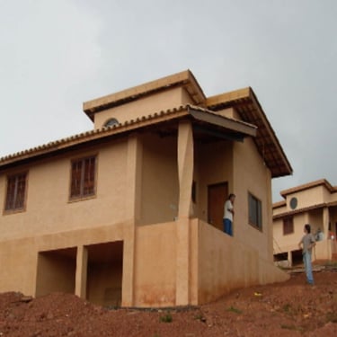 Algunas casas, con multiples diseños, construidas con ladrillo ecológico.