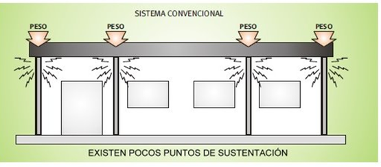 El sistema de construcción, tiene la ventaja de incrustar las columnas en las paredes, como veremos a continuación.